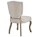 FINE UPHOLSTERY - Upholstered in polyester fabric, this Parisian styled chair adds distinction around a dining table. Magnificent detail and button tufting are a luxe complement to the rustic frame