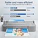 ✅[Faster and Quieter] Two heated rollers with a quick 1-minute warm-up to meet different requirements at a faster speed of 340m/min. Ultra-low noise, no longer afraid of rumbling noise to disturb family or others. This Laminator will create high quality professional and wrinkle-free results quietly to improve your work efficiency