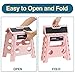 FOLDING AND SPACE-SAVING: It is very simple and convenient to use the folding step stool. Super easy to fold away and open the stool in seconds. Our small step stool is only 1.8 inches after the folding. When you don't need it, you can stash it in a drawer, between the refrigerator and wall, or any other narrow place.