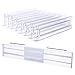FIT MOST DRAWERS: This set includes 8 drawer separators. Each Measure 10.9"/27.7cm x 1.65"/4.2cm x 4"/10cm high; Expands from 10.9"/27.7cm to 17.2"/43.7cm long. The expandable design fits most drawers. Organize bedroom dresser drawers and nightstands in children, tween, teen and adult bedrooms and closets; They are also perfect for organizing junk drawers, kitchen utensils, office desk supplies, craft and art supplies, bathroom clutter and more.