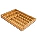 🔛 EXPANDABLE TO FIT MOST STANDARD KITCHEN DRAWERS: Our deep bamboo drawer organizer is ideal for saving kitchen storage space, thanks to its adjustable storage drawers that expand from 17”x13” to 17x19.6” wide with 1.9” deep slots. Easy to use and ideal for helping to maximize kitchen storage space, simply pull apart from the sides for additional storage space and a more secure fit for wider drawers. Different sized compartments allow for standard silverware and large utensil placement.