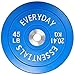 each bumper plate is color coded for easy identification and labeled in both lbs and kgs