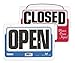 Double-sided Open/Closed sign ^6 inches x 11 inches ^Stylish, economical, easy to read ^Made from durable plastic ^Blue/Black/White