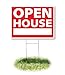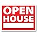 Open House yard sign ^Durable 4 mm thick corrugated plastic ^Includes metal H-frame stand for staking into ground ^Red/White ^Professional appearance