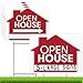 Open House yard sign ^Durable 4 mm thick corrugated plastic ^Includes metal H-frame stand for staking into ground ^Red/White ^Professional appearance