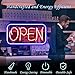 ✨【Adjustable Brightness and ON/OFF Switch】: The led open sign has a brightness adjustment button that allows you to adjust the brightness from 10% to 100%. It also has a switch button that can be turned on or off by pressing the button to avoid frequent pulling out of the plug. When the switch is turned on again, the brightness of the open neon will maintain the brightness before it was turned off last time, avoiding repeated adjustments.