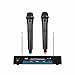 Rockville RWM1203VH VHF Dual Channel Handheld Wireless Microphone System. Large display on receiver + digital display on each mic. Each mic is large and solid with a nice weighted feel.
