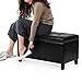 SAFETY DESIGN: Constructed with a sturdy corner-blocked frame . Padded hinged lid stays open for safe access to storage space inside—great for your blanket and throw pillows.