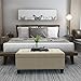 【COMFORTABLE SEAT】 31lbs lightweight large ottoman with 300lbs capacity, you can easily move it anywhere. The linen surface makes the bed bench can last for a long time, enjoy your life in style with belleze ottoman! Dimension: 46.85"(W) x 16.73"(D) x 16.73"(H), the 2.76-inch high support legs are suitable for you to sit or use as a footstool.