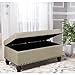 【ANTIQUE DESIGN WITH HINGE LIFT】- Button-Tufted Cushion Top and Nail-head Trim. The brown legs really add to the appearance, the top is very easy to open and close without loud noise.