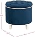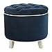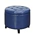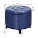 OTTOMAN WITH STORAGE: Crafted with a classic navy blue faux leather and decorative tufting our tufted ottoman is the perfect to hide remotes controls and magazines in any room of your home