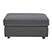 MODERN STYLING: Casually cool and contemporary, this enticing ottoman with thick, firm cushion and charcoal gray upholstery includes round black plastic legs and contrast stitching for added flair