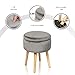 🐰 Powerful applicability: The modern round makeup storage stool is suitable for many occasions, such as bedrooms, living rooms, children's rooms, reading rooms, etc. It can not only as a tool to storage or be a vanity footrest, but also can be used as a small coffee table by turning the top cover. With the movable flip top cover, it's a good choice to put the coffee cup, snacks or books on it when sitting on the sofa or laying on bed