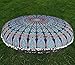 Sky Blue Peacock Feather Mandala Design Hand Screen Printed Round Pouf Cover