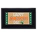 Features the words, "Happy St. Patrick's Day" in trendy font green and orange background, with green check plaid border
