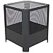 Ideal for patio: Fire pit is 16.75 inches square x 19.75 inches tall (with grill) x 19.25 inches tall (without grill); Weighs 13.2 pounds; Grill grate is 15.75 inches square and 3.2 mm thick with 1 inch prongs; Interior of fire pit is 16.5 inches square x 17.5 inches tall; Constructed of durable 1 mm thick steel in a sleek black finish; 1.75 inches clearance from ground; Simple, modern style works well with a variety of outdoor decor