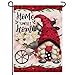 DOUBLE SIDED: Pattern available in both sides.ORTIGIA Red Heart Gnome garden flags are printed via sublimation printer and then heat pressed onto burlap that may be hung inside or out.