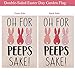 Vibrant Rabbit Funny Yard Flag: Vibrant “ OH FOR PEEPS SAKE” and three bright cute bunny rabbits printed in premium colorfast permanent dye. Funny Easter Day Garden Flag.