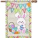 Village Outdoor Easter Day Decorations: Rustic Easter bunny garden flag for garden, front yard, front door, mailbox, front porch decor. Easy to install through the sleeve of the flag.