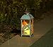 STURDY BUILD - Crafted of metal and glass, this Vintage lantern has a weathered bronze finish with handpainted accents and glass panels with a metal top and ring. This storied glass and metal lantern brings warmly weathered charm to your home decor and will hold your candles up to 3.5" dia. Measures 6"Wx12"H.