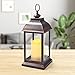·【INDOOR/OUTDOOR LANTERN】:Plastic with Metallic Bronze Undertones with led flameless candle and timer function included.Warm white pillar candle sits inside a cool black plastic lantern with glass sides. Both made of weather resistant resin for use indoors or outdoors.