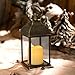 STURDY BUILD - This decorative lantern is made from supreme quality wrought iron material with rust-resistant powder coating which is durable but lightweight for long-time use. Four glass window panes let light flicker through and protect the flame from drafts which is great for outdoor and indoor use. Place a candle(up to 7" dia) inside the lantern to illuminate your space in a soft and dreamy glow. Measures 5 1/2"W x14 4/5"H.