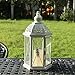 STURDY BUILD - Four glass window panes let light flicker through and protect the flame from drafts. Strong metal frames distressed by white/bronze brush powdering for weather resistant use. Serves as rustic decoration indoor & outdoor, ideal for yard, pathway, driveway, shelf, table, bar, photo booths, patio, porch, etc. Place a candle(up to 4 1/2" dia) inside the lantern to illuminate your space in a soft and dreamy glow. Measures 4 7/10"Wx16"H.