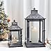 STURDY BUILD - Full tempered glass visual panes, greatly reduce the damage of glass when decorative lanterns from external changes. Strong metal frames are distressed by black with bronze brush powdering for weather resistant use. Serves as rustic decoration indoors & outdoors, ideal for yard, pathway, driveway, bar, photo booths, patio, front porch, etc. Place a candle(up to 7" dia) inside the lantern to illuminate your space in a soft and dreamy glow. Measures 5 1/2"Wx15 1/5"H.