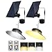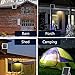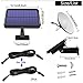 【IP65 Waterproof & Easy to Install】IP65 waterproof and ABS material can withstand in rain and other extreme weather conditions. Each light is connected to the solar panel by a 16.5ft cable, which allows you to leave the solar panel outside for charging while hanging the light indoors or under roof.