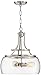 Seeded clear glass allows the bulbs to be seen. Satin nickel finish frame and canopy. Iron construction.