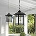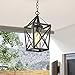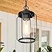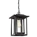 [MODERN OUTDOOR HANGING LIGHTS] This outdoor hanging lantern is made of straight line metal construction and clear glass in sanded black finish, whether you're looking to illuminate backyard get-together or guest welcome front door, this hanging porch light is here to help.