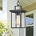 [MODERN OUTDOOR HANGING LIGHTS] This outdoor hanging lantern is made of straight line metal construction and clear glass in sanded black finish, whether you're looking to illuminate backyard get-together or guest welcome front door, this hanging porch light is here to help.