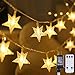 【 Warm White Star-shaped Lights 】- 33 FT 100 LED star-shaped string lights with remote and timer, UL-certified adapter powered. Each bulb is about 1.4 inches wide with durable, waterproof plastic construction. The lights are spaced about 4 inches apart across a 33-foot strand.