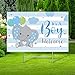 Cute Design: our it's a boy yard sign with plastic stake is beautifully designed and looks so cute, featuring little blue elephants, balloons, clouds and other theme elements, printed with words such as [it's a boy], [welcome], the blue elephant baby shower yard sign is ideal choice for announcing the arrival of a newborn