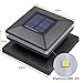 Modern Solar Post Lights: Made of high quality plastic, made tough and sealed tight, no need to worry about rust. Each solar lights includes 15 lumen with 12 pcs high brightness SMD LED, much brighter than other solar lights. Measures: 4.95 x 4.95 x 2.4 inch per light. Package includes: 2 x Solar Post Lights.