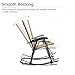 [STABLE ROCKING AND COMFORTABLE HEIGHT] ] Safety latch locks rocker in open position make it more stable.Rocking chair height has been optimized for reduced knee bending, comfort and durability. Try smooth rocking motions from this outdoor chair that rocks you to a good nap.In addition, the frame treated with a powder coating that is designed to prevent rust, resist water damage, and protect the metal from the sun and weather.
