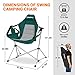 【Swing Camp Chair】The rocking camping chair supports up to 300lbs, weighs only 10.6 lbs. It can be folded into a compact bag(35.4 x 9 x 9 in). Triangle cross bracket easy to fold and use, easy fold design makes for easy storage and transportation