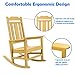 Comfortable Outdoor Rocker: A wide seat, armrests, and sturdy slatted backrest creates a comfortable spot to sit while you rock.This rocking chair is designed with streamlined slat structure, which effectively promotes the heat dissipation.