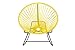 Modern design; round, hoop-shaped, slightly reclined frame and rocker base; no cushion needed