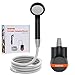 【Upgraded ON/OFF Shower Head】- With innovative design of built-in valve, you can open or block water sprinkling and adjust the intensity of water flow by pressing down the shower head in different degree. This camping shower’s water outlet has stainless steel flat surface and fine holes, easier to clean and hard to accumulate dirt like traditional shower head. The portable shower head is more light and handy, even kids can grip it without effort.