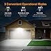 3 Optional Modes: LED motion sensor light outdoor has 3 lighting modes to meet your different needs: [Auto] Light up at night once outdoor motion lights triggered by moving people, animals and cars. [Dim Light] Shine 700lm dim light at night when no motion is activated, fully lit 4200lm once motion is detected by security light. [Dusk to Dawn] Turn on at dusk, off at dawn automatically.