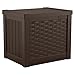 Product 1: DECK STORAGE BOX: Beautiful wicker plastic outdoor box has a 99-gallon capacity for patio, deck, yard, porch, garage, and shed storage!
