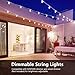 Weatherproof String Lights for Outside: IP65 waterproof string lights can withstand snow, sun, damp, wind, rain and extreme temperatures for outside use. This durable string lights have special waterproof sockets that completely wrap the bulb to improve the sealing performance and product lifespan. Drain hole on the tail plug to prevent water from entering.