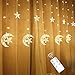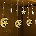 【Crescent and Star Curtain String Lights】12 drops of crescents and stars, display size of 6.56*2.95 FT. It is creative and welcomed RAMADAN decorative lights.