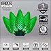 [ 25 C9 GREEN NON-TWINKLE LED LIGHTS ] Set of 25 green C9 steady LED lights spaced 8 inches apart on green wire, 6-inch lead with fused stackable male plug, 17 feet total length. Please check bulb size before ordering (see “C9 Set Dimensions” graphic). C9 bulbs are larger than C7. Overall height of 3” vs 2.1”.