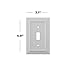 SPECIFICATION – This universal 1-gang Toggle switch wall plate is perfectly sized (4.9” H x 3.1"W) for a standard Toggle switch.