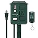 Outdoor Timer with Remote Control: Simply control your outdoor devices to turn on and off with portable remote controller; Suitable for Christmas/holiday/yard/porch lights, pool pumps, fountains; Water resistant design; Best outdoor timer for lights and perfect holiday light timer