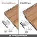 Perfect Fit: Our 1/2" partial overlay hinges are designed for surface mount cabinets in your kitchen and bathroom. They are easy to install and come with newly upgraded 5/8" screws that ensure a perfect fit, even when using power tools.