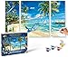 Everything Included: Water-based acrylic paints in resealable pots, 1 packet of finishing gloss, 1 double-tipped brush, 2 paint holder palettes,1 cardboard canvas, 1 painting reference guide, 1 set of simple instructions, and 1 picture hanger.