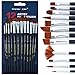 This 12-piece artist brush set includes 8 different assorted tips: liner, round, flat, angle, filbert, dagger, rake, fan. They are perfectly capable for all kinds of painting techniques.
